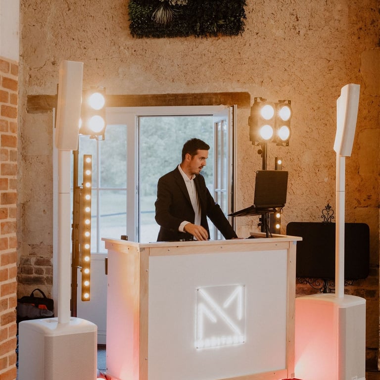 Spécialisé dans les prestations de mariage haut de gamme je propose des installations de sonorisation et d'éclairage sobres qui ajouteront une touche d'élégance à votre événement.