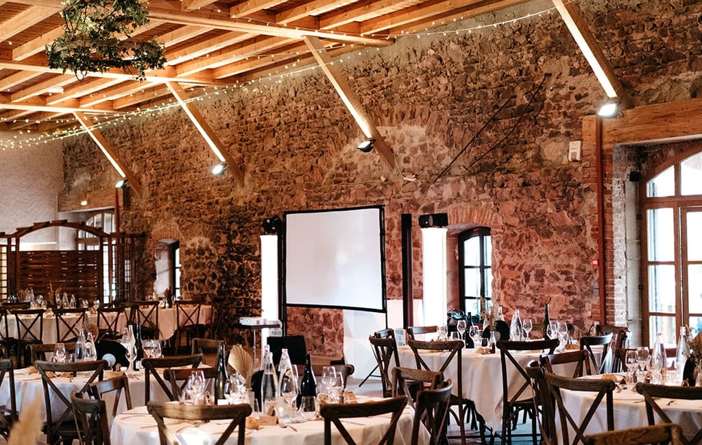 Pour les grands événements, voyez plus grand ! Deux écrans et deux vidéoprojecteurs sont disponibles.