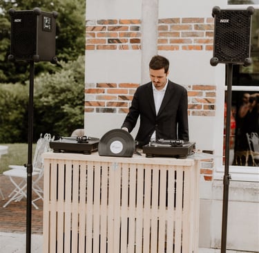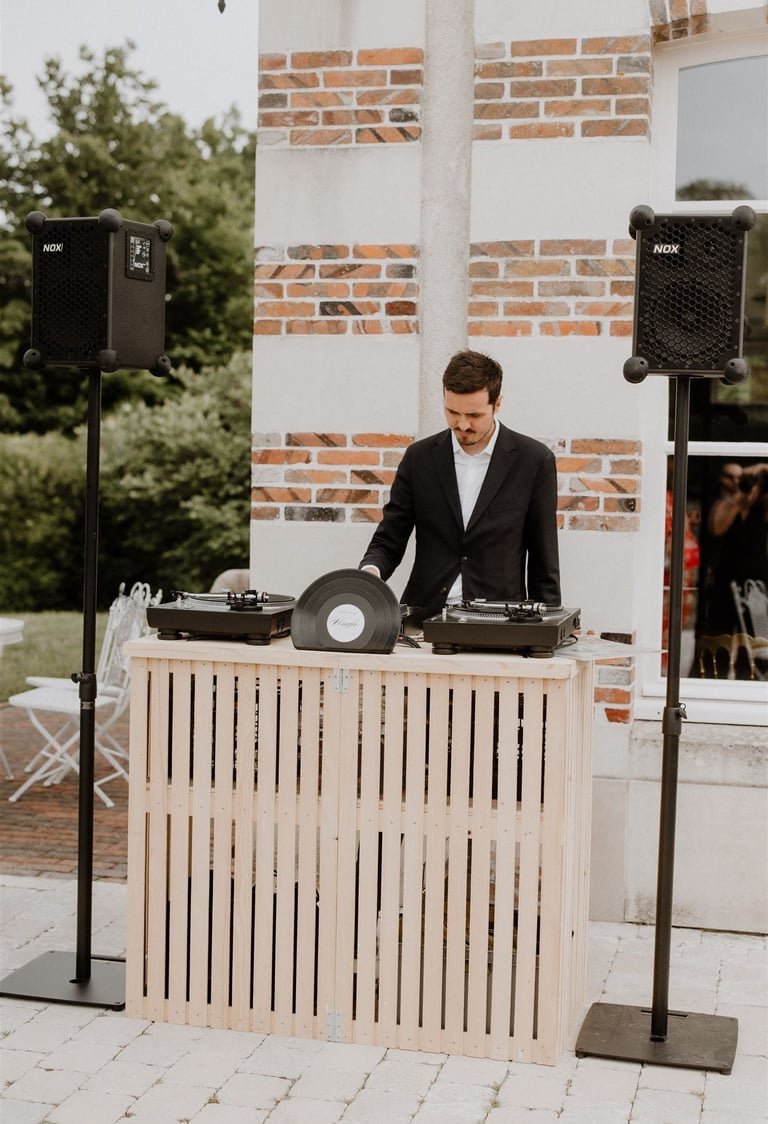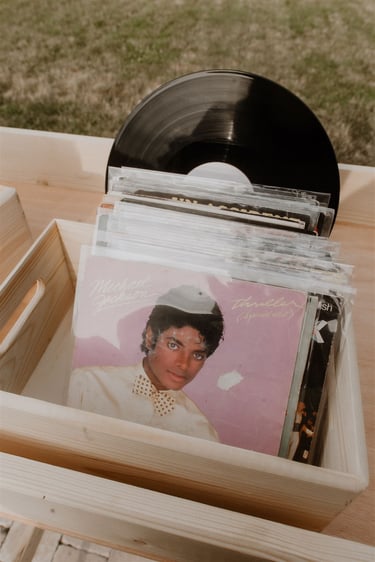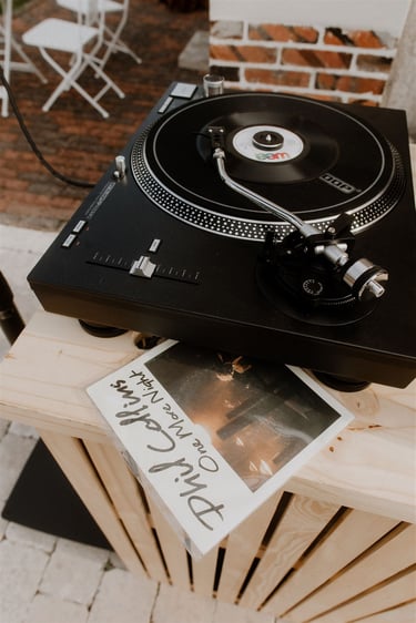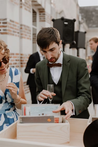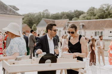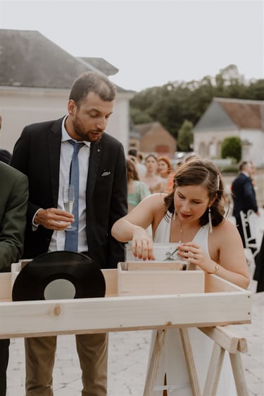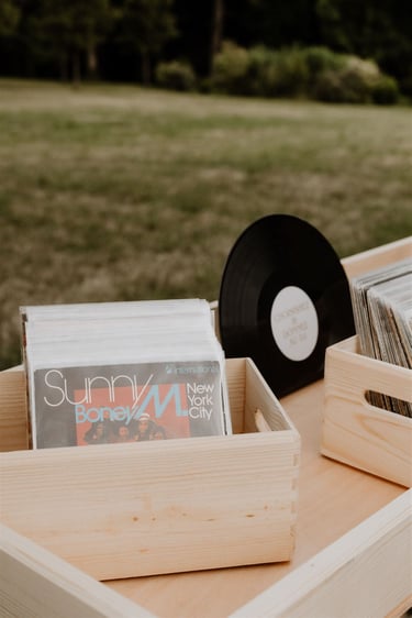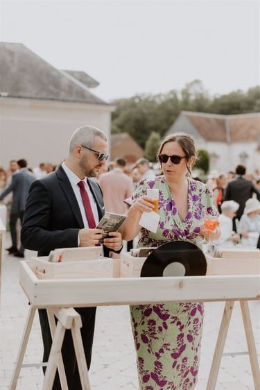 Généralement installé pour le cocktail, l'Atelier Vinyle Vintage fabriqué par mes soins, propose de mettre à disposition des invités, toute une collection de vinyle. Vos invités auront alors la possibilité de choisir les vinyles qu'ils souhaitent écouter en les donnant au DJ.
