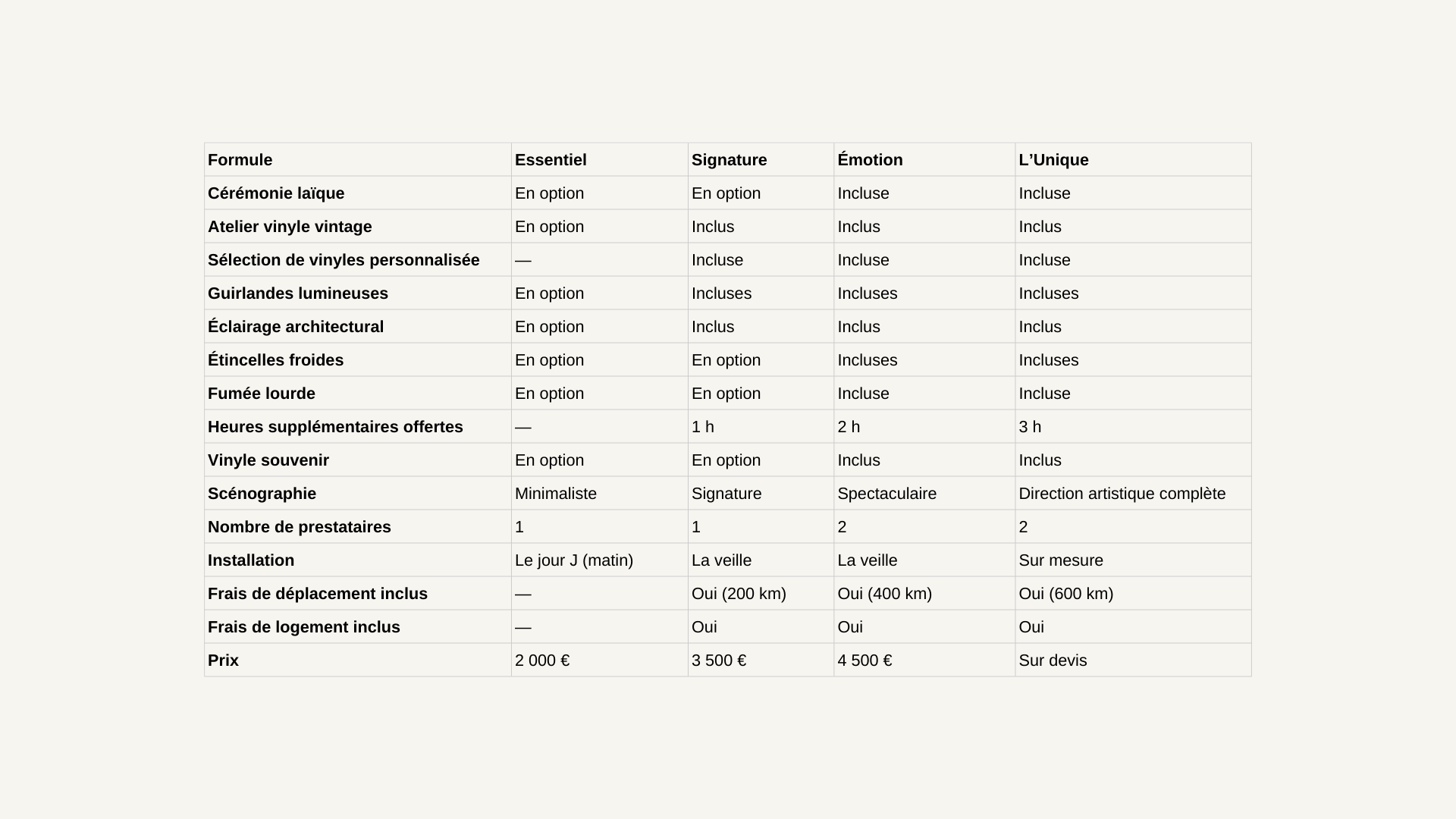 Du cocktail jusqu’au bout de la nuit, trouvez la formule qui correspond parfaitement à votre mariage.